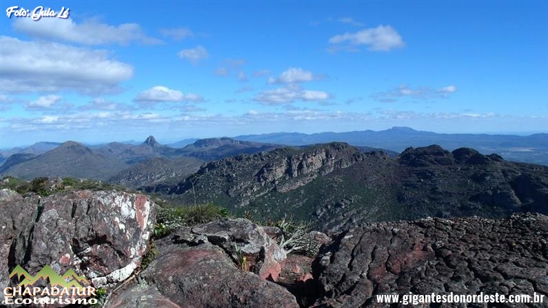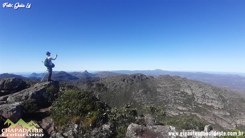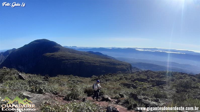 Dia 04 - Catolés de Cima / Olho D'água / Forquilha da Serra / Pico do Barbado - A caminhada começa em nível alto em trechos calçados que lembram escadas, com subidas íngremes e passagem por vários pés de eucalipto, depois a dificuldade cai e seguiremos com subidas mais brandas até um local conhecido como Forquilha da Serra, a partir desse ponto a dificuldade se eleva e o ganho de altitude é rápido, assim que a dificuldade começar a diminuir é sinal de que estaremos chegando ao cume do maior pico do nordeste. Lá do alto teremos uma vista completa das montanhas próximas e em dias de céu claro avistaremos as montanhas mais distantes como o Morro do Camelo, a serra dos Três Morros, o Morro Branco e o Morro Manoel Vitor no Vale do Pati, a Serra da Mesa e o Pico das Almas e Itobira. Parada pára fotos e contemplação. Montaremos o nosso acampamento em um local protegido dos ventos e faremos o nosso jantar, a noite teremos uma bela vista das estrelas e os vilarejos e cidades próximas iluminadas.